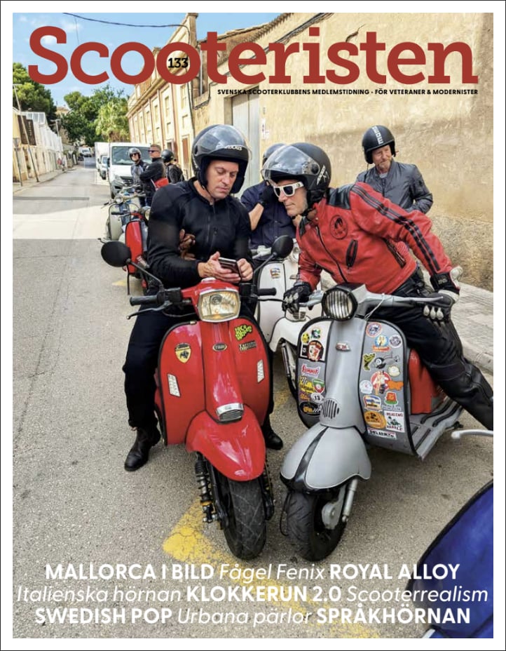 ÅRETS SISTA NUMMER AV SCOOTERISTEN PÅ INGÅNG I det kommande numret av Scooteristen besöker vi såväl Oslo och Mallorca som Nyköping, Göteborg, Stockholm och icke minst Skövde. Vi provkör en Royal Alloy, tar en tur i musikens universum, får oss en lite tydligare definition av begreppet "Rideout" och lär
